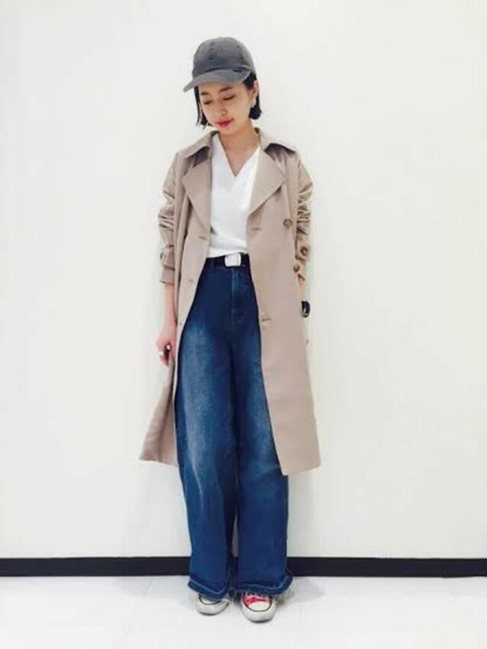 トレンチコートとレイヤードの組み合わせは、こなれスタイルに挑戦したい方にぜひオススメしたいコーディネート。スニーカーで動きやすく、ラフなカジュアルスタイルに仕上がりました♪