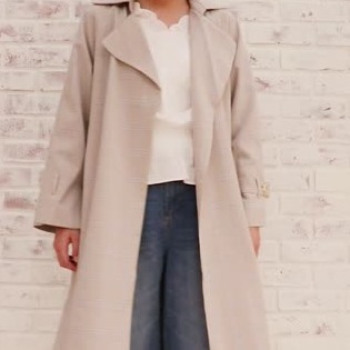 上着が欠かせない春秋にピッタリ。はおるだけでコーデがキマるチェック柄トレンチです。