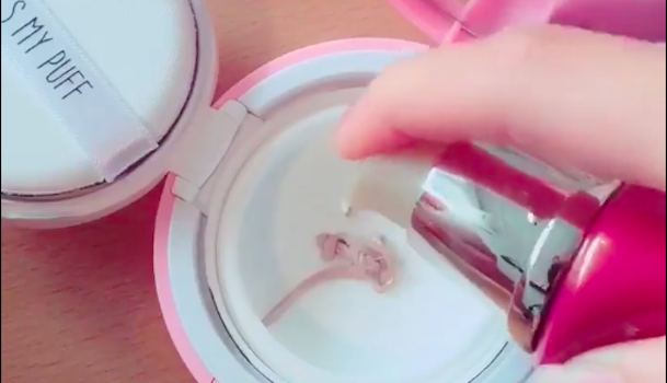 クッションケースにBBクリームとクリームを入れます。