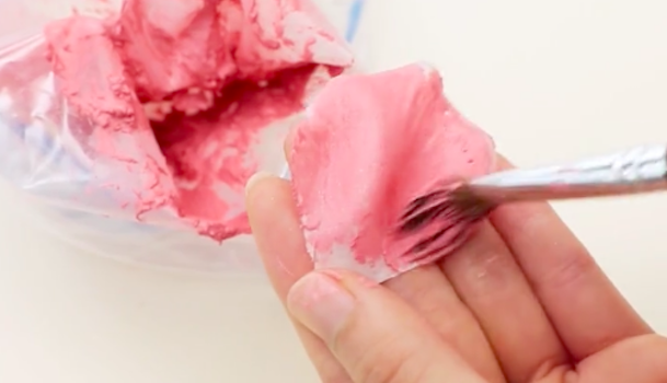 花びらに練りチークを筆で塗り、乾かします。