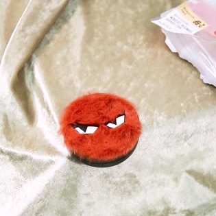 Cuteな赤い顔から目が離せないデザイン。ポーチの中からのぞかせたい!