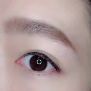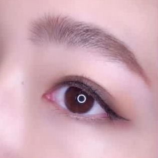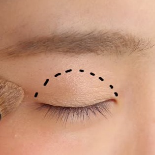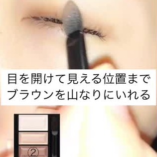 ブラウンを山なりに塗ります。目を開けて見える位置まで塗るのがポイント♪