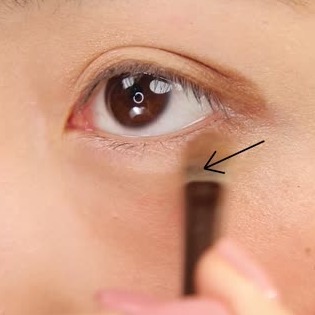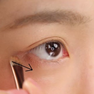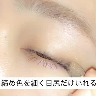 締め色を目尻に入れます。ここでは細かく塗りましょう。二重幅を締め色で埋めないように注意♪