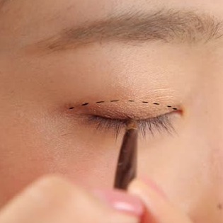 まつ毛の生え際にそって、まずは目尻まで引いていきます。濃く書きすぎないよう注意してみましょう♪
