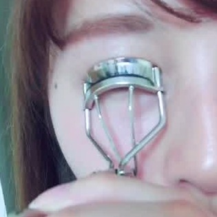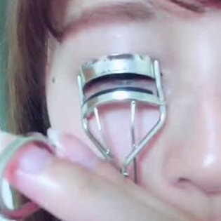 まつ毛の根元ギリギリまでビューラーを入れます。まぶたを挟まないよう注意!
