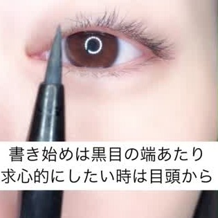 書き始めは黒目の端のあたりから♪求心的にしたいときは目頭から引きましょう!