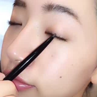 インラインを上からではなく下から上へ引いていきます。このとき、まぶたを少し引っ張りながら書いていくのがコツです♪
