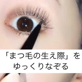 まつ毛の生え際をゆっくりなぞっていきます。まつ毛の隙間を埋めていくイメージでなぞりましょう!