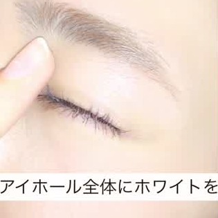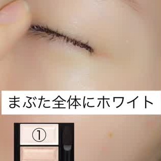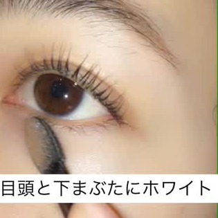 まぶた全体にホワイトを塗ります。まんべんなく塗るのがポイントです!