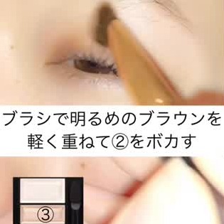 手順1に続きブラウンを入れていきます。目尻が濃くなるようにフワッと塗るのがポイント♪