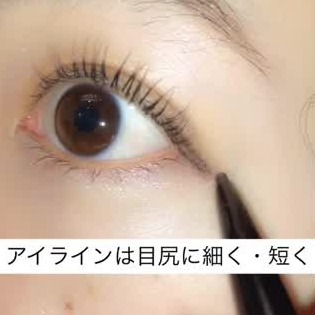 アイラインを引きます。目尻に細かく短く引くのがポイント♪