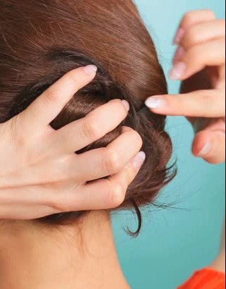 ポニーテール部分をねじってお団子を作り、崩れないようにヘアピンでとめます。今回は、お団子の形にそって数本のピンでしっかりと固定しました。