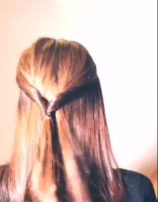 ここで1回目のくるりんぱ!ヘアゴムの上あたりの髪を2つに分けて、すきまに毛先を通しましょう。写真のようになったらOKです。
