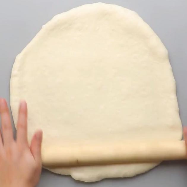 まずはめん棒を使って、厚さが均等になるようにピザ生地を伸ばしていきます。