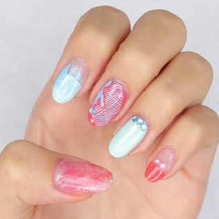パステルカラーが淡く混ざって、ふんわりかわいいこちらのネイル。実はシールを重ねて貼るだけで簡単にできるんですよ♪