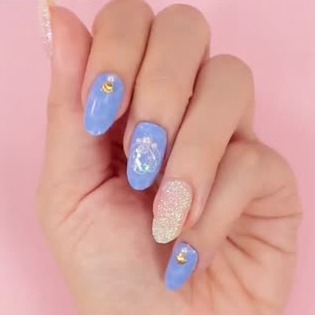 ORLYの「ポジティブコーラレーション」「スノーウォーリーズ」「ロボロマンス」は塗るだけで一気に貼るらしさが出る組み合わせ。シェルや押し花、金箔などのパーツをのせたら、しっかりとトップコートをしてくださいね。