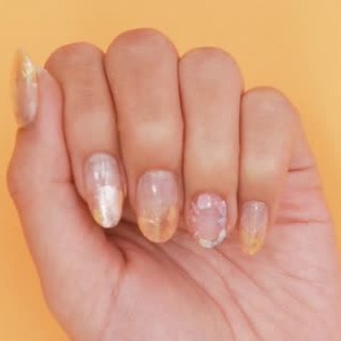 淡い色合いでやさしい雰囲気のあるグラデネイル。暖色のグラデネイルにラメ入りのマニキュアを重ねることで上品な大人っぽさのある春ネイルを完成させることができます♪