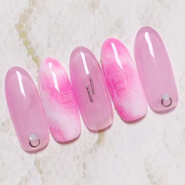 シアーなピンクの爪で春らしいふんわりあたたかな印象を与えましょう。ブラシで色を作れるので、あなただけのデザインを作れますよ♡