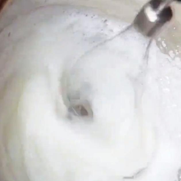 泡立てた卵白に、グラニュー糖を3回に分けて泡立てます。