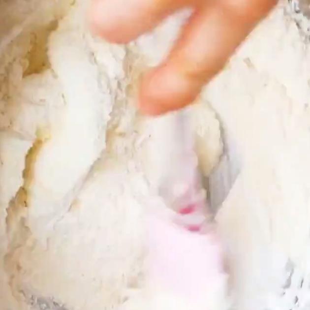 手順3でできたものに、ふるいにかけた粉類を加え、大きい気泡を潰すように混ぜていきます。