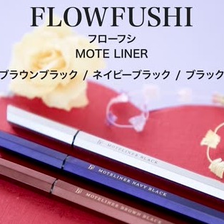 FLOWFUSHIブランドの看板アイテム、モテライナー。ウォータープルーフ成分配合で落ちにくく、極細毛先でスルスルとした書き心地が特徴的。