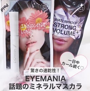 EYEMANIAのミネラルマスカラ ボリュームプラスはまつ毛1本1本を濃く、太く見せてくれるボリュームタイプのウォータープルーフマスカラ。