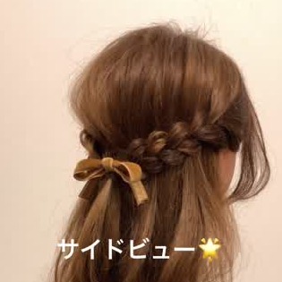 基本の編みハーフアップの完成です。編みの部分を崩していくだけでより大人っぽい印象に近づきますね♡