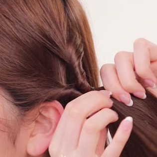 後ろに向かって両側をくるりんぱしていきましょう。くるりんぱした後にきつく絞っておくと、取れにくくなります!