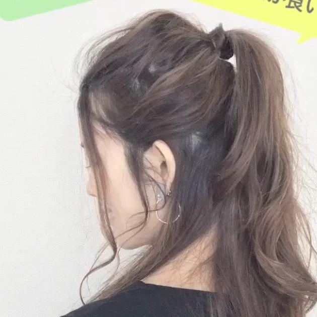 ゴムを使って、高めの位置で結びましょう。毛束をゴムの周りに巻きつけると、よりおしゃれな印象に近づきます◎