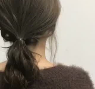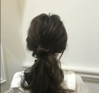 地味なイメージになりがちのローポニーテール。毛先をねじる事によって華やかさがプラス。カールさせた前髪を下ろすと、柔らかい雰囲気のローポニーとマッチします