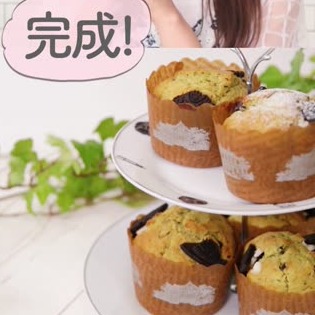 材料は、ホットケーキミックス、卵、抹茶アイス、オレオのたった4つだけ!アイスクリームのフレーバーを変えるだけで簡単にいろいろな味のマフィンが作れる、アレンジ自在のレシピです♪