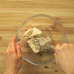 ボウルに絹豆腐を入れ、泡立て器でくずします。