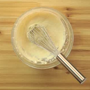 くずした豆腐がなめらかなペースト状になるまで、泡立て器で混ぜましょう。