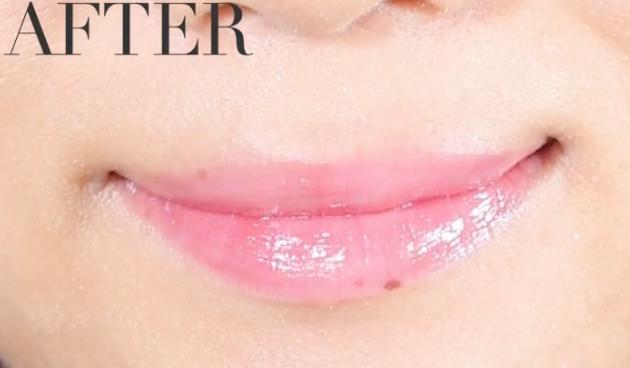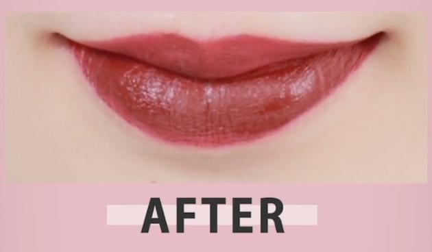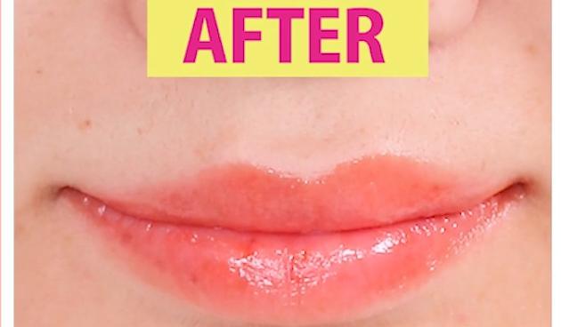 最後に、綿棒をつかって、先ほど濃いティントを塗った箇所の外側に薄いリップティントを塗っていきます。すると、自然な印象を与える血色リップのできあがり♡