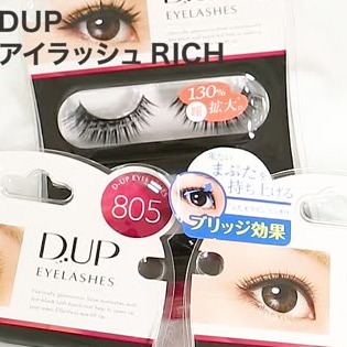 D-UPの「アイラッシュ RICH」はバリエーションが11種類あるのであなたにお好みのボリューム感が見つかるはず◎上下につけることでさらに目の存在感をアップできますよ。