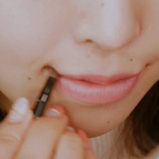 リップライナーでリップの端をくの字でなぞります。この時に使うアイテムはできるだけリップの色に近づけると自然なメイクが仕上がりますよ◎