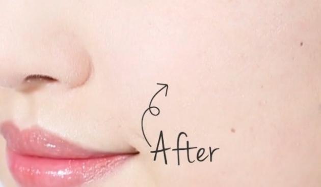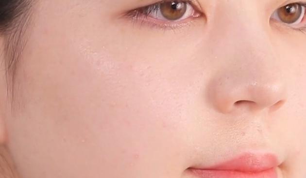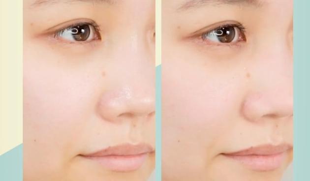 下の画像は、ポアレスクリアプライマーを小鼻周りに塗ってからファンデーションを重ねた状態。テカリや毛穴を抑えた肌に仕上がっています。