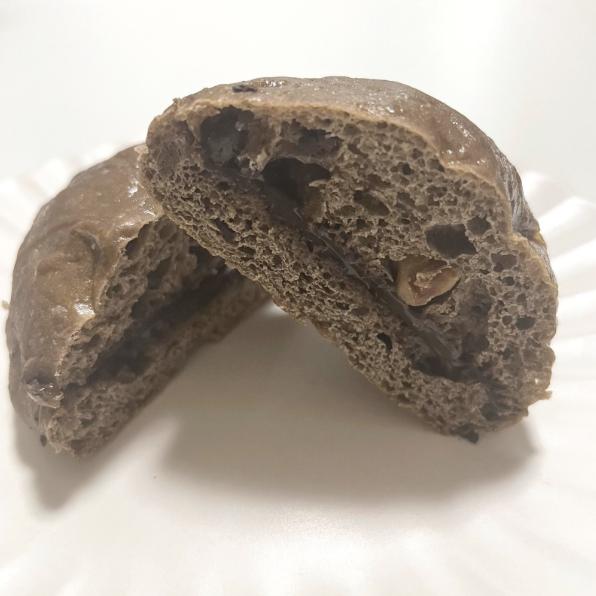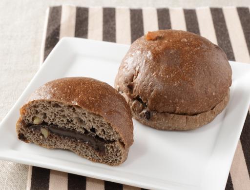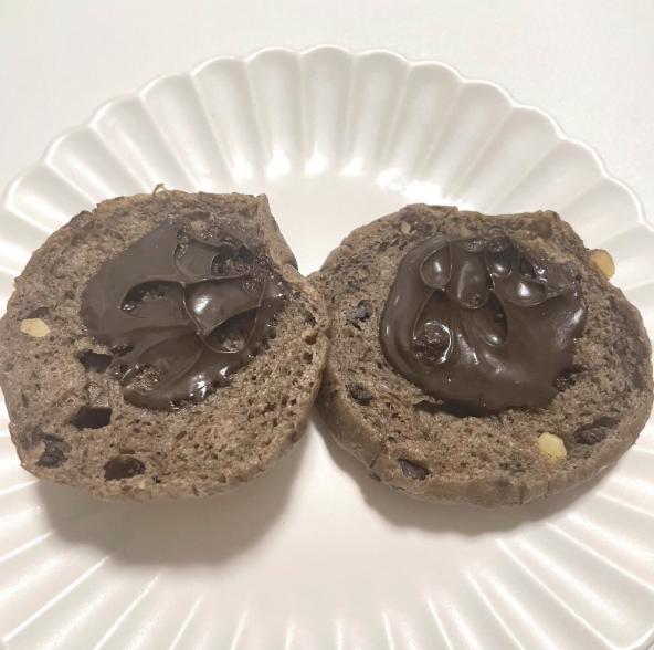 パンにはチョコチップとクルミが練り込まれており、中にチョコクリームが挟まっています。