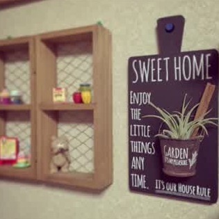 大幅な模様替えは出来ないから小物だけでもカフェ風にしたいという方にオススメ!カッティングボードをアレンジして作る、カフェ風壁掛けインテリアです。材料はほとんど100円ショップで集めることができるのでコスパも良い◎