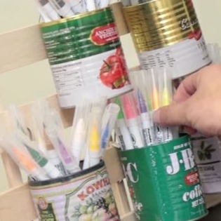 ブリキ缶の壁掛け収納でお部屋が一気にカフェ風になります。ペンやはさみ、文房具などを入れればお部屋もすっきり。
