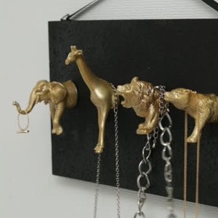 100円ショップで買えるアニマルフィギアがフックに変身します。コルクボードにグルーガンで付けるだけでとっても簡単♪