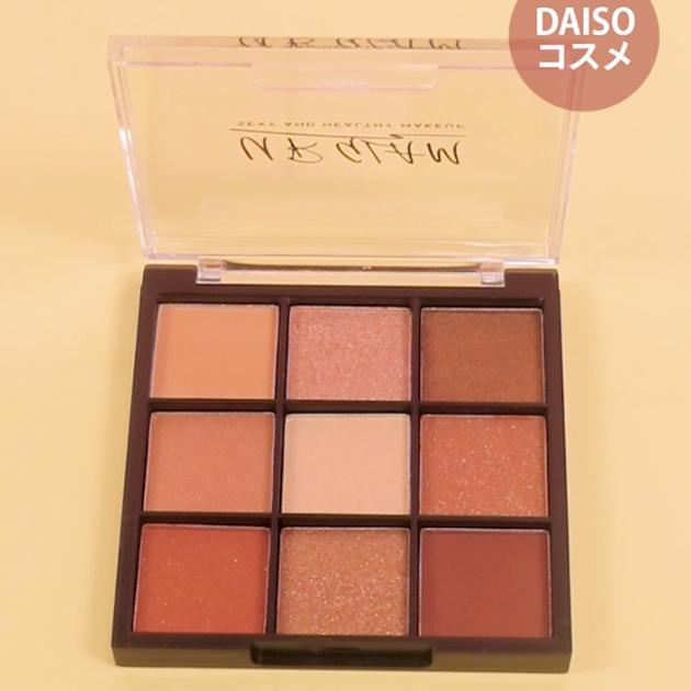 UR GLAMの「ブルーミング アイカラーパレット」は、ダイソーでゲットできる大人気アイテム。人気のブラウンを集めた9色のパレットで捨て色もありません◎