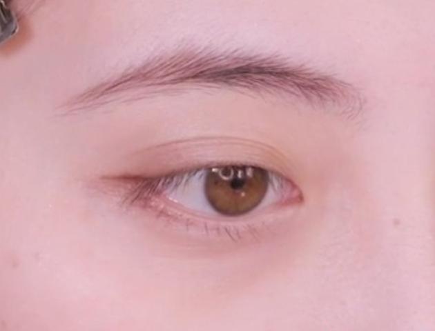 次に、ゴールド系のブラウンをブラシに取り、二重幅に乗せます!