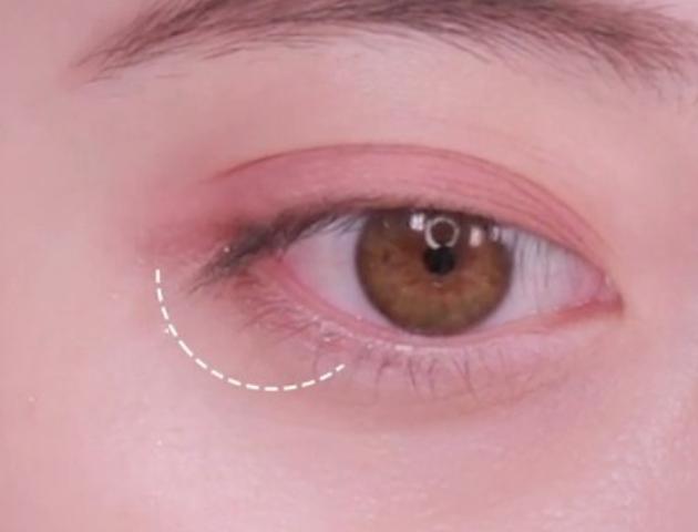 ラメの入った濃いめのピンクをブラシに取って、目尻に、くの字に乗せましょう♪