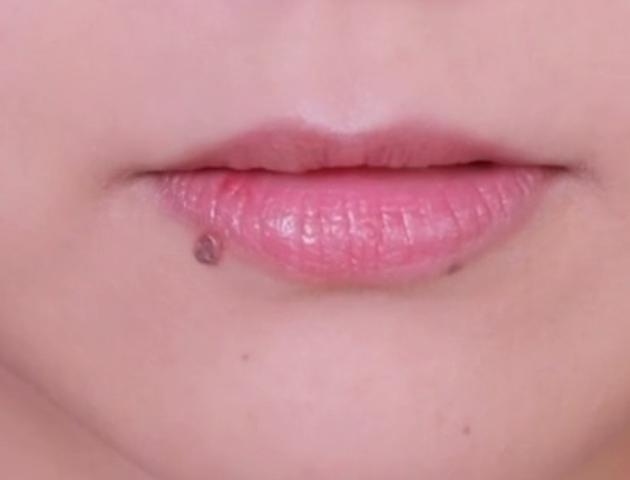 マットリップをベースとして、唇全体に塗ります。次に、ローズ系リップを内側に重ねましょう♪
