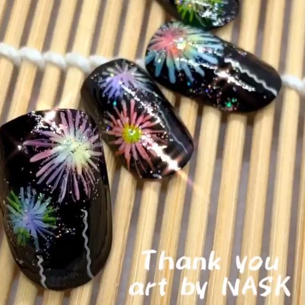 8. クリアカラーのポリッシュで中心部分の花火を塗る (2色程使い微妙に混ざるようにする)