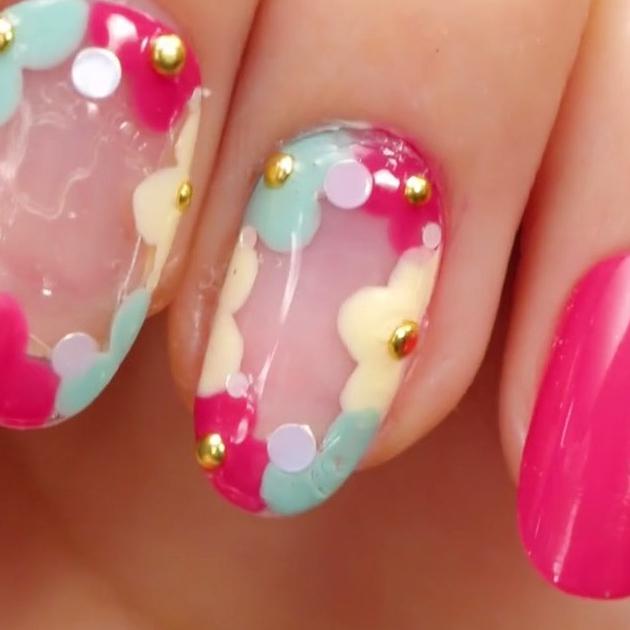 2. パステルカラーのマニキュアをランダムに丸く塗ってドットにする