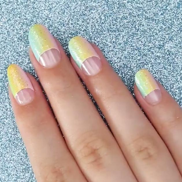 2. ラメグリーンのポリッシュで逆フレンチをつくる