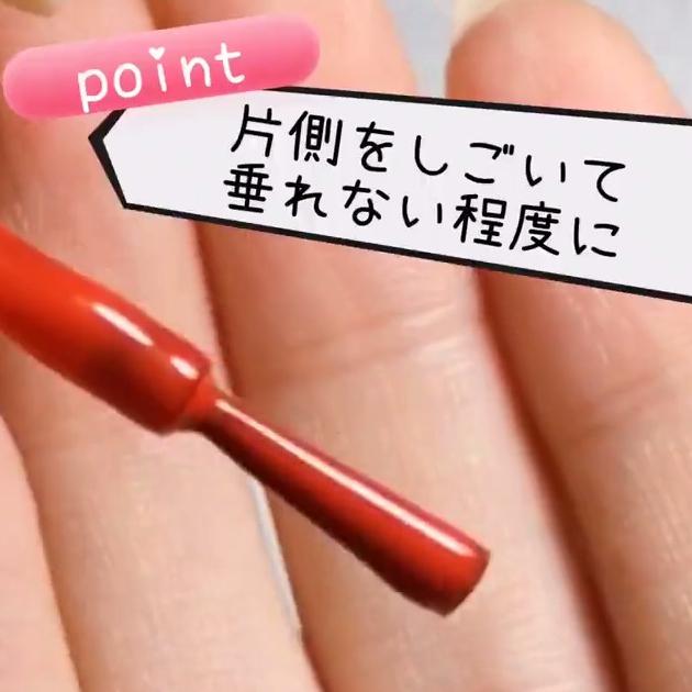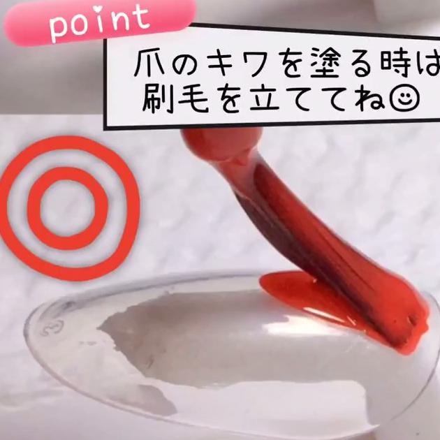 爪の際を塗るときは、刷毛をたてるのがポイント◎キレイに仕上がりますよ。