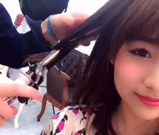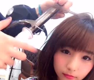横の髪を多めにとって、コテが地面に垂直になりすぎないように横巻きにしてください!
